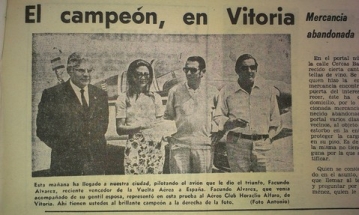 La foto es del año 70 en el que se recoge la noticia del triunfo del AC en la vuelta aérea a España. A mano izquierda y con gafas aparece Elías Aguirrezabal presidente del AC. Era médico de profesión especializado en análisis clínicos y un hombre muy culto e íntimo amigo del escritor Ignacio Aldecoa que había fallecido unos meses antes en Madrid.