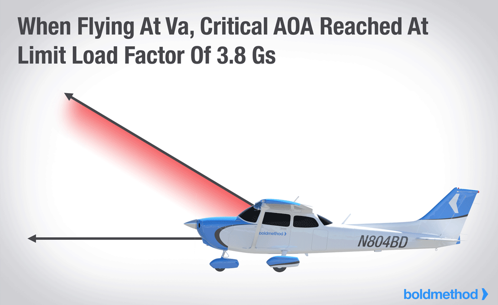 El concepto esencial de la protección de la Va , asumiendo que estemos a nuestra Va o por debajo de ella, nuestro avión entrará en pérdida si alcanzamos su peso estructural máximo (g’s límite). A medida que el avión entra en pérdida, descarga las g, eliminando el riesgo de deformar la estructura.